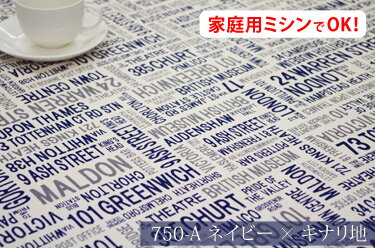 アウトレット! ベイカー柄 【色:ネイビー×キナリ地 750-A】 オックスプリント 幅広 150cm ! コットン100%♪ダブル巾 日本製 布 綿 英字柄 バスロール インテリア クッション テーブルクロス カーテン のれん ファブリックパネル ソファーカバー